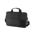 Pasta para computador em 600D. Compartimento forrado com divisória almofadada para computador até 15.6''. Bolso frontal com fecho e bolso em rede. A pasta tem alça de ombro ajustável com reforço.