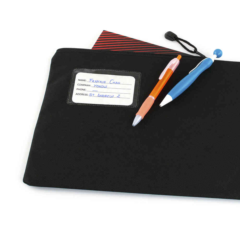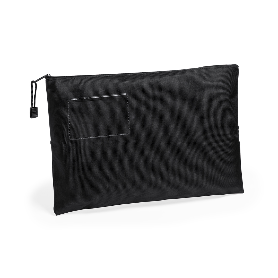 Pasta Porta-Documentos A4 em poliéster 600D com fecho de correr e com identificador de PVC integrado. Em cores brilhantes, com zíper combinando e fita reforçada para uma abertura confortável.
