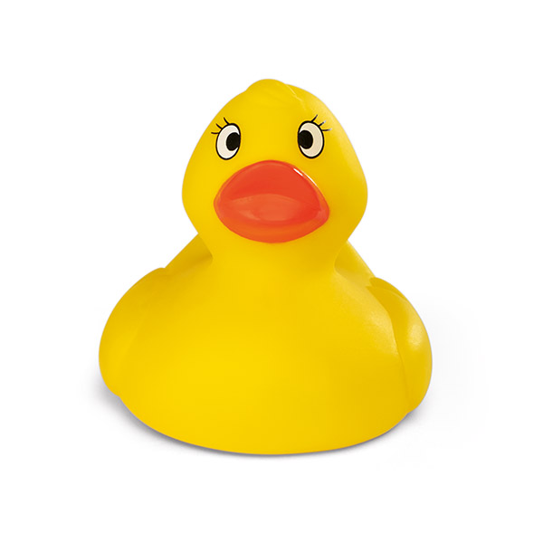 Pato amarelo de borracha em PVC que é ideal para brincar na água.