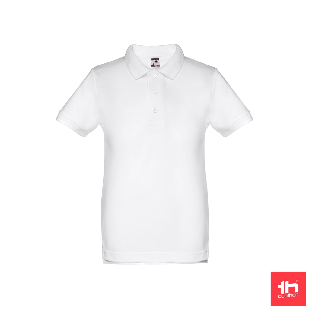 Polo de Criança Unisexo. Malha piqué 100% algodão. fita de reforço na gola e carcela reforçada com 3 botões à cor. Gramagem 195g/m².