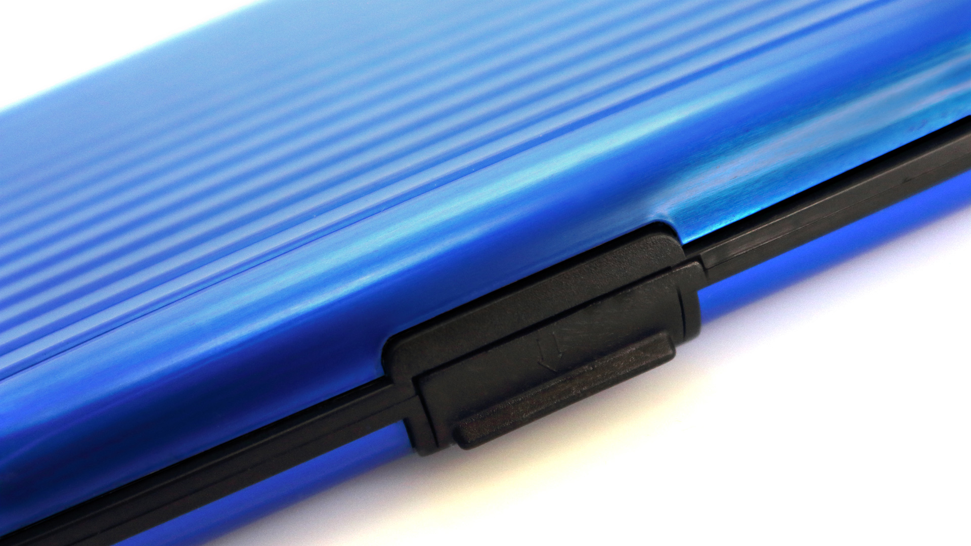 Porta-cartões elegante com corpo em alumínio e cores elegantes. Com 6 compartimentos de acordeão internos, um sistema de fecho por clique e uma área suave no exterior projetada para marcação a laser. Apresentado numa única caixa de prata.