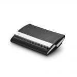 Porta-cartões duplo em metal e imitação de pele. Fornecido em caixa.