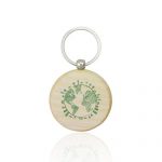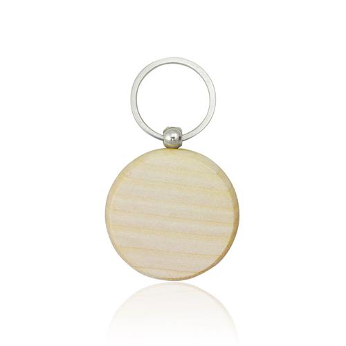 Porta-chaves redondo em madeira. Numa onda natural e ecológica, este porta chaves de madeira tem ótima área de gravação. Inclui ainda uma argola metálica.
