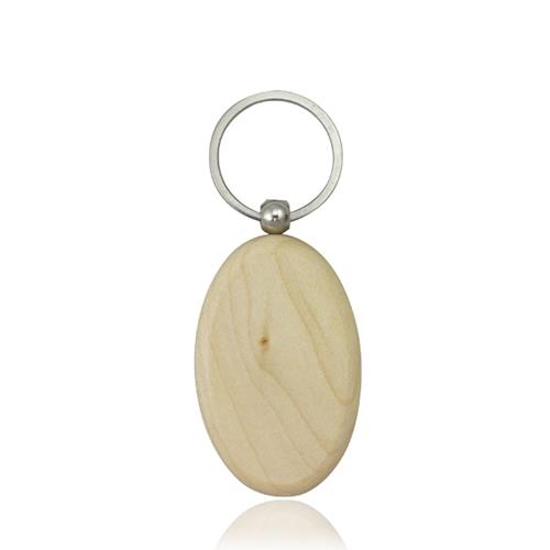 Porta-chaves oval em madeira. Numa onda natural e ecológica, este porta chaves de madeira tem ótima área de gravação. Inclui ainda uma argola metálica.