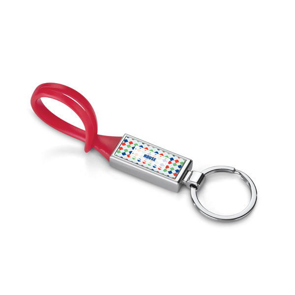 Porta-chaves em metal e PVC. Fornecido em caixa de oferta