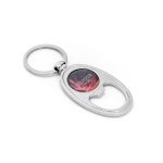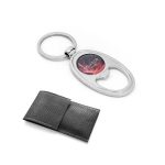 Porta-chaves em metal, com encaixe para doming e com descapsulador. Fornecido com bolsa de non-woven.