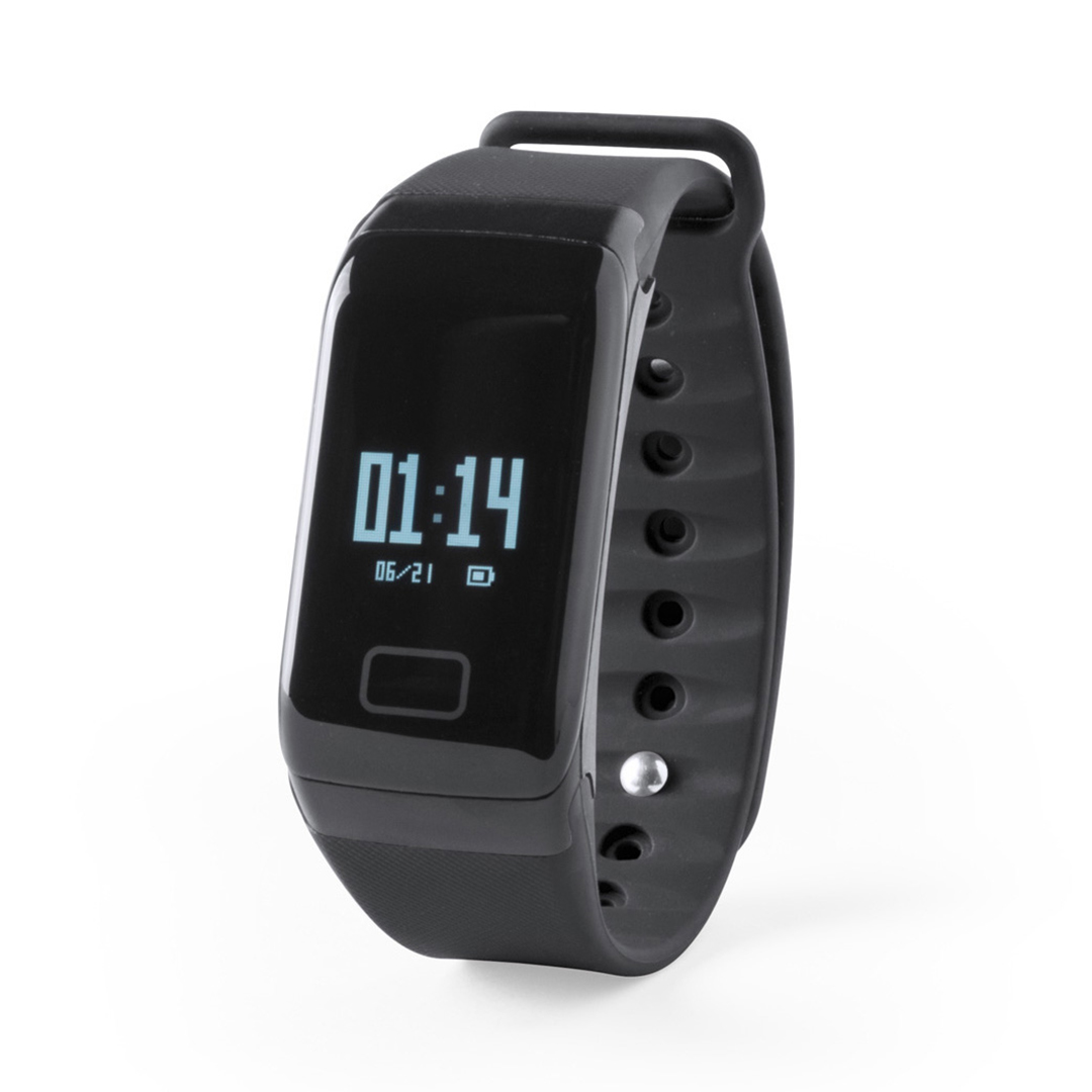 Relógio inteligente multi-funcional com design desportivo com conexão Bluetooth® e recarregável via cabo USB - incluído-. Pulseira em material TPU e tela OLED de 0,66 polegadas que o tornam o gadget perfeito para todos os tipos de desportos, lazer e atividades do dia-a-dia. APP disponível para iOS e Android. Apresentado em uma atraente caixa de design.