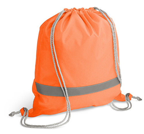 Saco tipo mochila em 210D, com elementos refletores. Produto promocional.