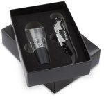 Set de vinho em aço inoxidável, com saca-rolhas e decantador.