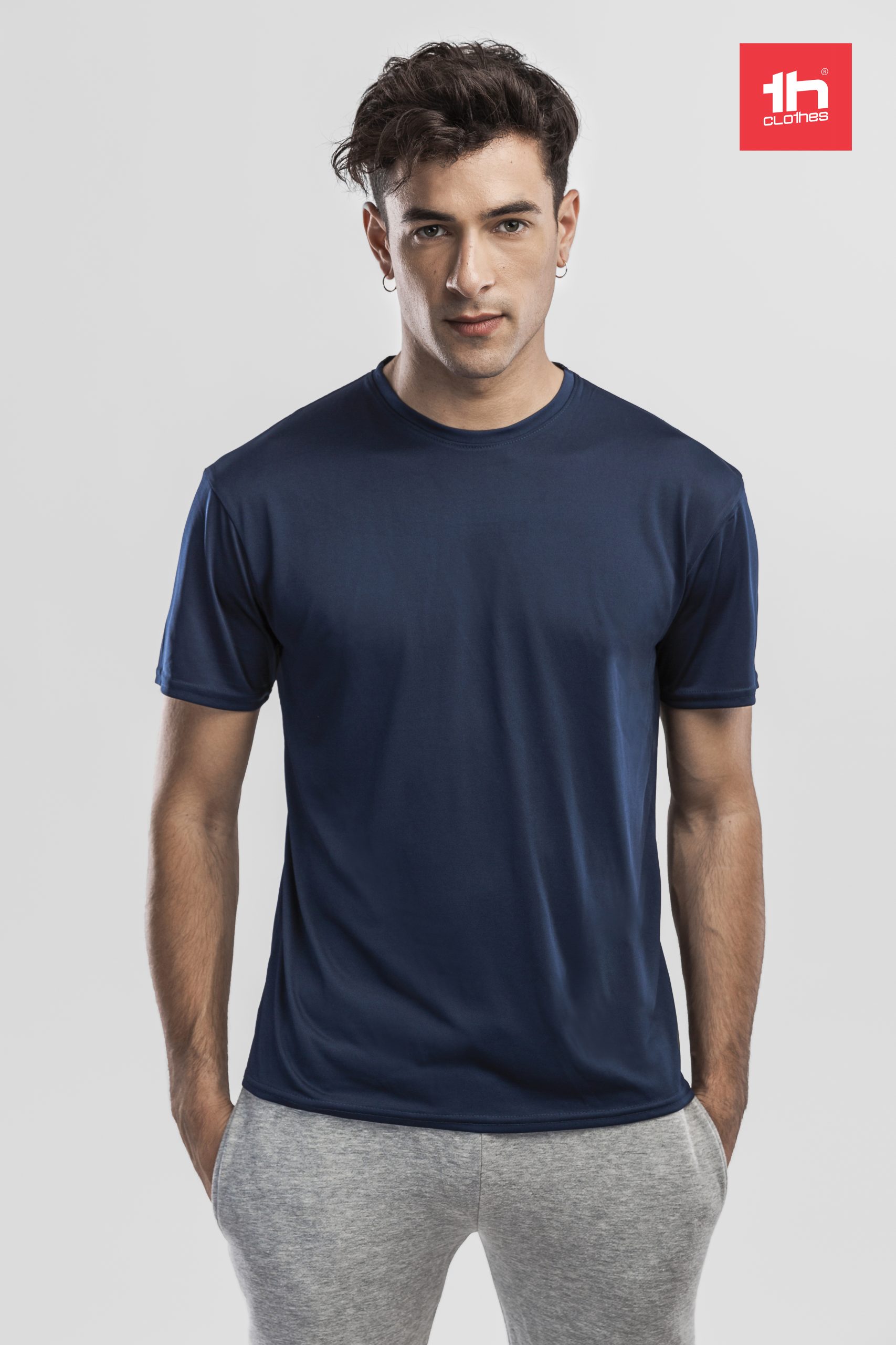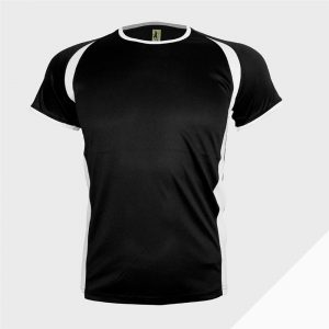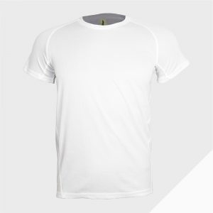 T-Shirt técnica Homem, malha jersey 100% poliéster, manga curta e fita de reforço na gola. Gramagem 125g/m².