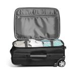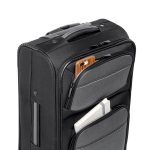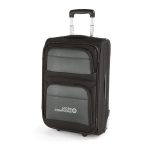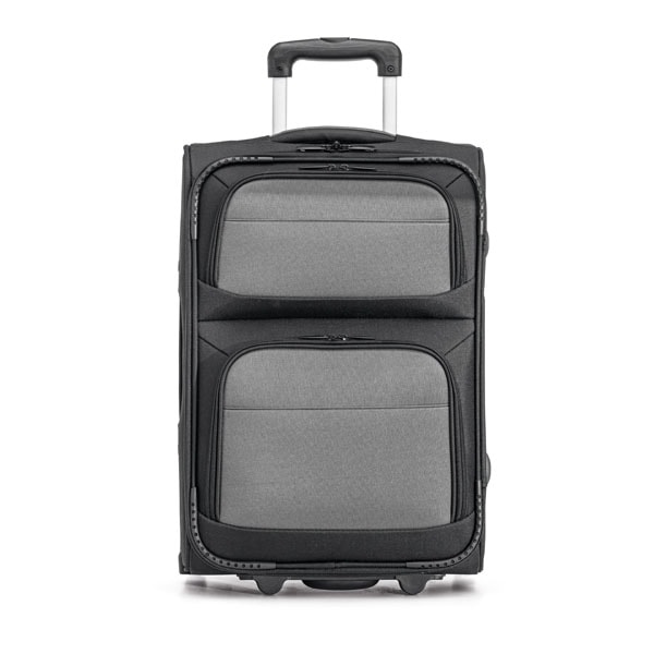 Trolley de viagem em poliéster 600D e EVA. Contém 2 compartimentos frontais semi-rígidos, interior forrado e bolso interior. Na parte posterior tem uma etiqueta para identificação. Pega extensível em alumínio, com mola. Trolley com capacidade até 34 L e peso de 2,90 kg.