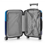 Trolley de viagem em ABS e PC com interior forrado e divisória. Contém 4 rodas duplas giratórias e pega extensível em alumínio, com mola. Na lateral, tem um fecho de segurança com código. Capacidade até 33L e peso de 2,70 kg.