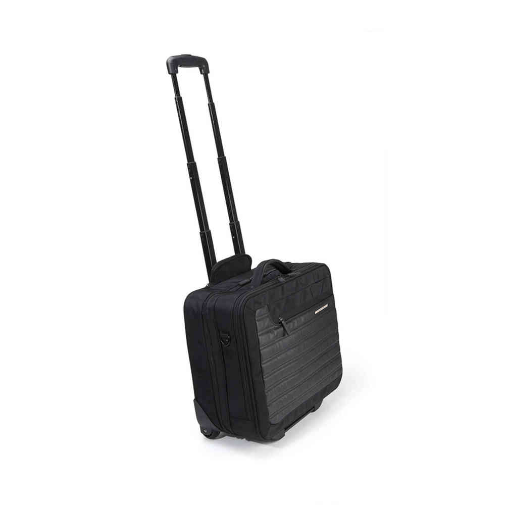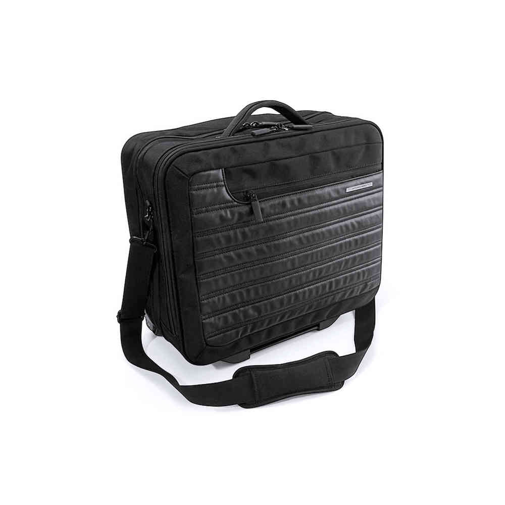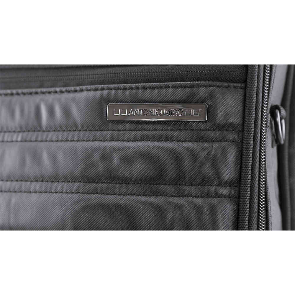Trolley de Viagem de Antonio Miró de duas rodas numa elegante combinação de poliéster 900D e couro sintético. Com uma confortável alça dobrável que se esconde em um bolso com zíper, identificador e compartimento interno acolchoado para laptops de até 16 polegadas. Compartimento principal com fecho de correr duplo puxador e bolso frontal com fecho. Alça de transporte acolchoada. Com o logótipo da marca no painel frontal.