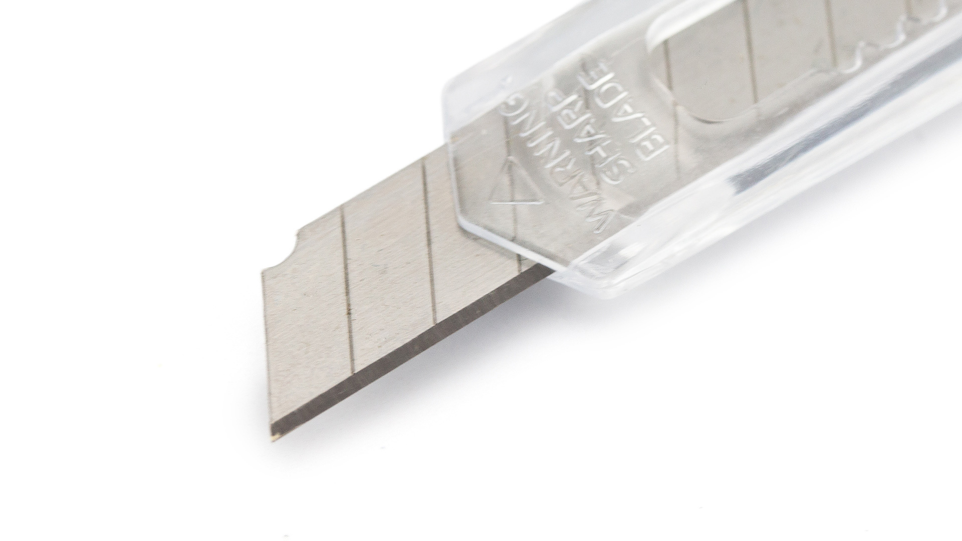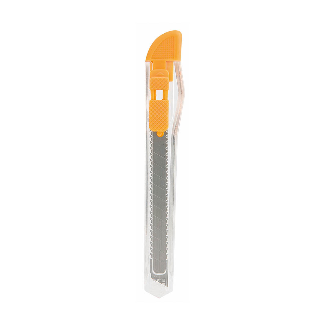 X-Ato de alumínio e caixa transparente. Com mecanismo de travamento de segurança e removível para ajuste do corte da lâmina.